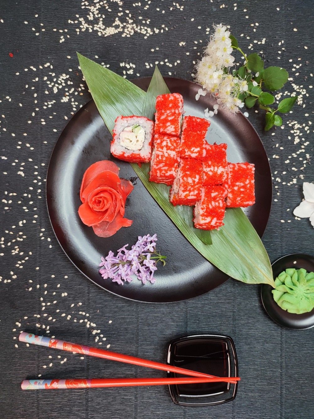 Ролл «Филадельфия» с икрой тобико