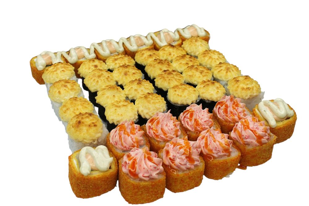 5 порций (40 шт) Темпура батакон, Лава темпура с креветкой, Чиз сыр, Крабик чиз, Сяке чиз