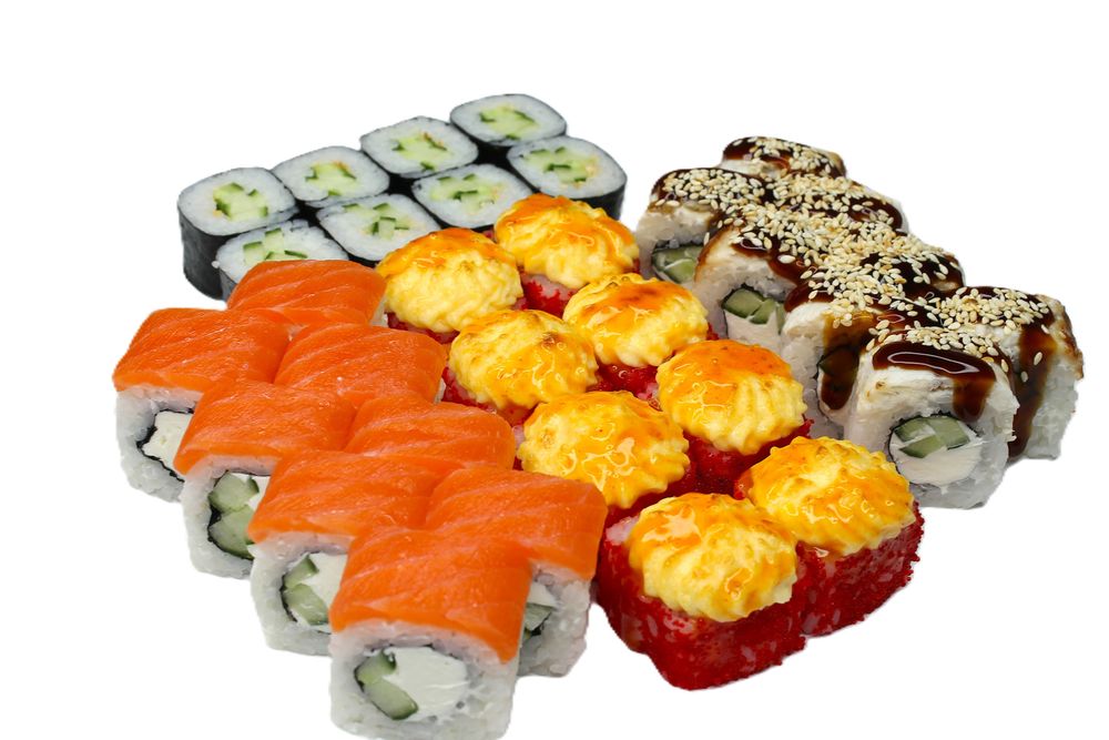 4 порции(32шт) Канада ролл, Филадельфия лайт, Каппа маки, Запеченный чикен