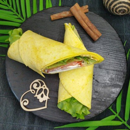 Состав: сыр творожный, тортилья, кляр, курица жареная, помидор чищенный, огурец