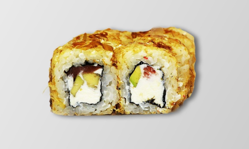 Состав: рис, лосось стейк, водоросли нори, сыр творожный, стружка тунца,авакадо